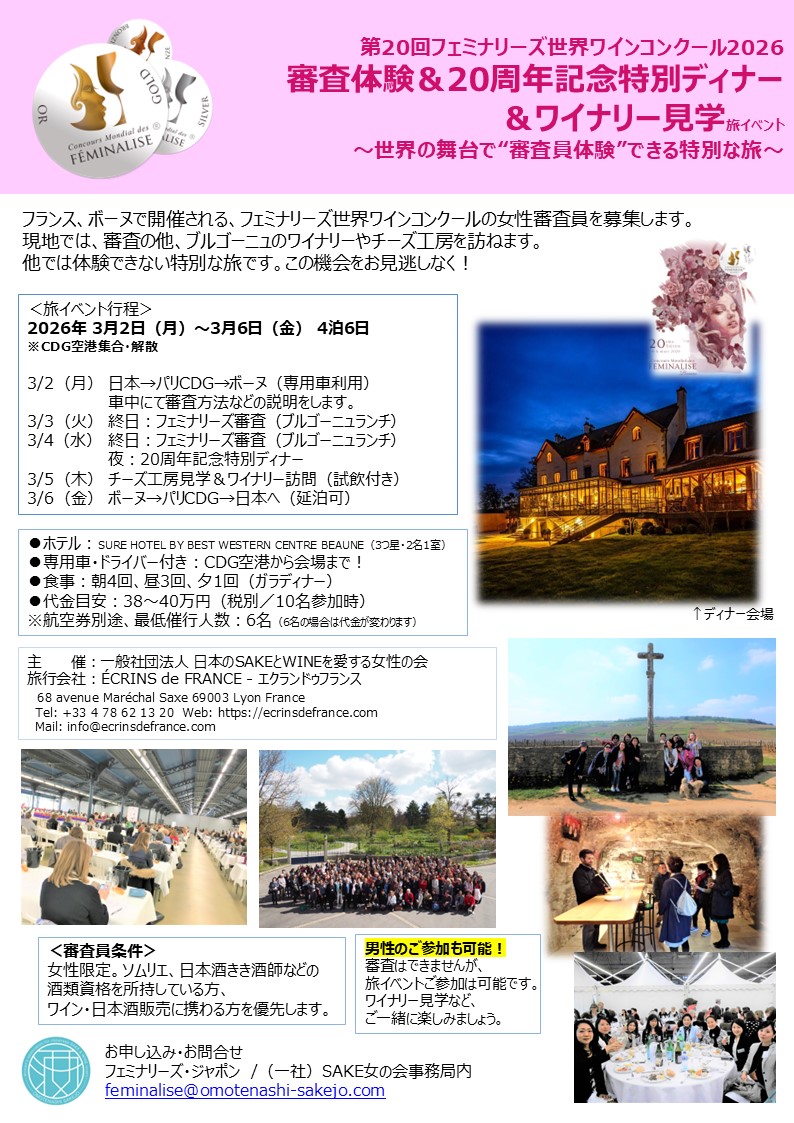 これらを受け、(一社)SAKE女の会/フェミナリーズ・ジャポン事務局では、
