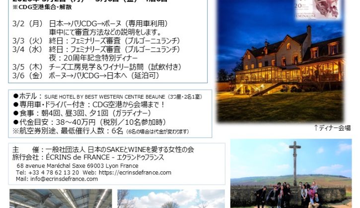 世界の女性ワイン専門家が厳正審査する国際酒類コンペ『フェミナリーズ世界ワインコンクール』。 (一社)SAKE女の会では、2017年より、 友田晶子代表 … 続きを読む 【審査員旅イベント参加者募集】第20回フェミナリーズ世界ワインコンクール2026 (2026年3月2日~6日)